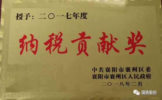 近日,襄陽國鐵被授予“襄州區(qū)2017年度納稅貢獻(xiàn)獎”,并獲得現(xiàn)金獎勵6萬元。